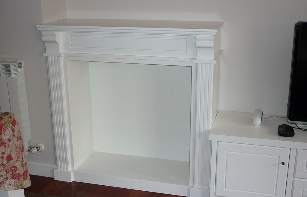 Módulo clásico de chimenea con molduras torneadas para la incorporación de un quemador decorativo.