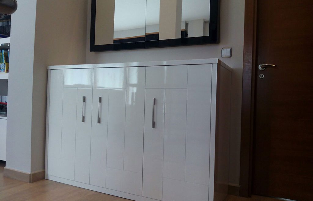 Aparador para el hall, con baldas para zapatos, puertas modelo Milán acabado en alto brillo.